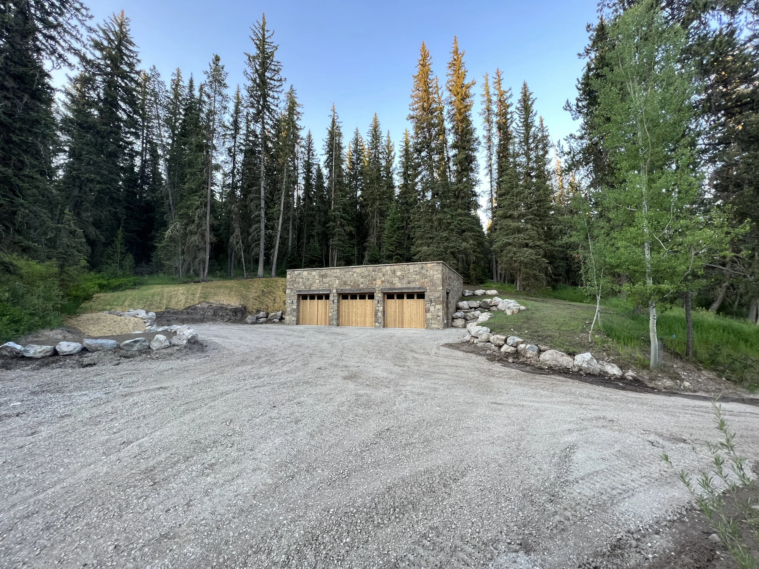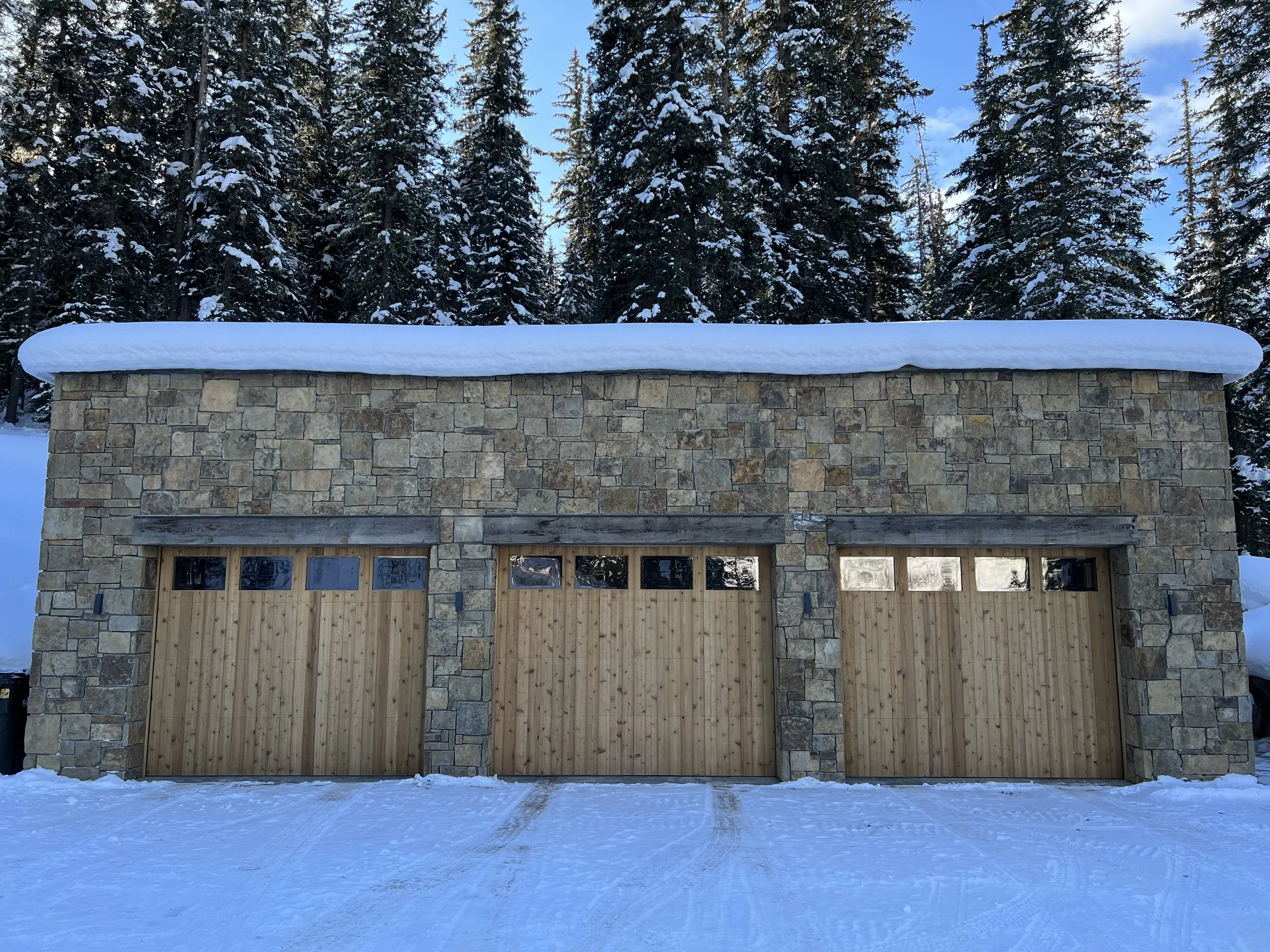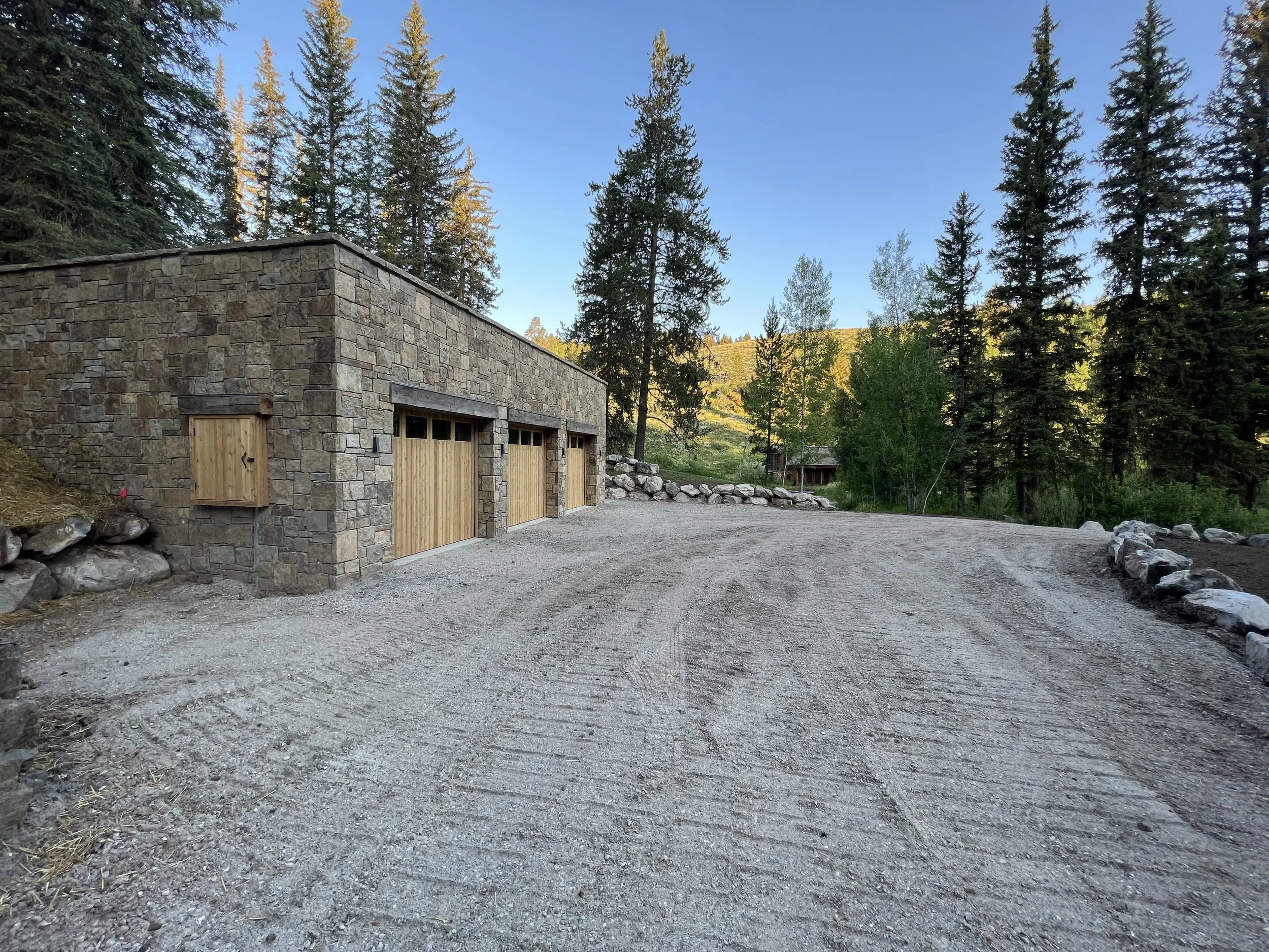 Nestled into the hillside of the Snake River mountain range in Wilson Wyoming, our client requested a detached garage to provide ample vehicle storage and work space while embracing the surrounding landscapes. The farmer’s stone veneer and reclaimed timber headers bring a natural feel to the structure’s façade. An irrigated green roof with native grasses help the building assume it’s position into the hillside.