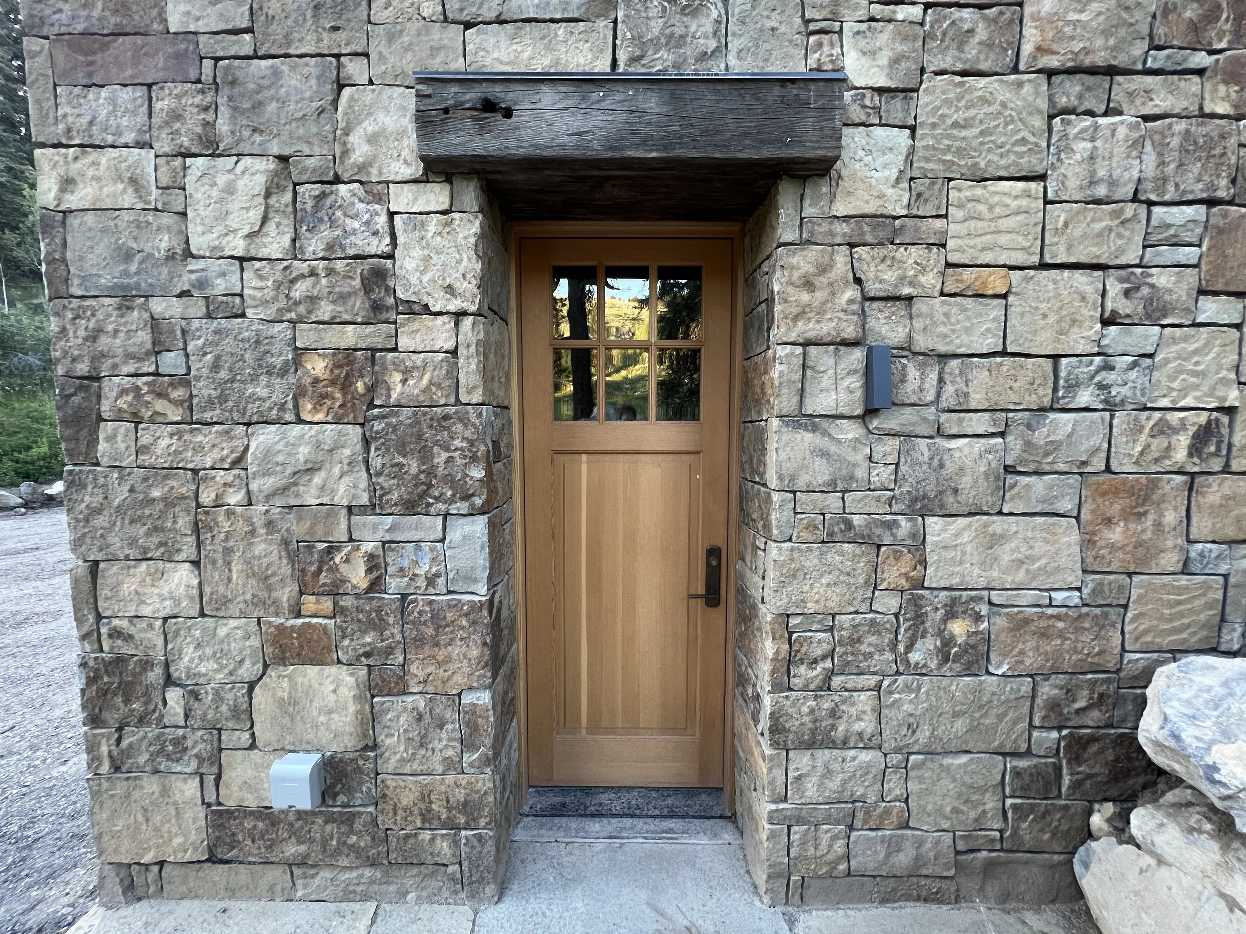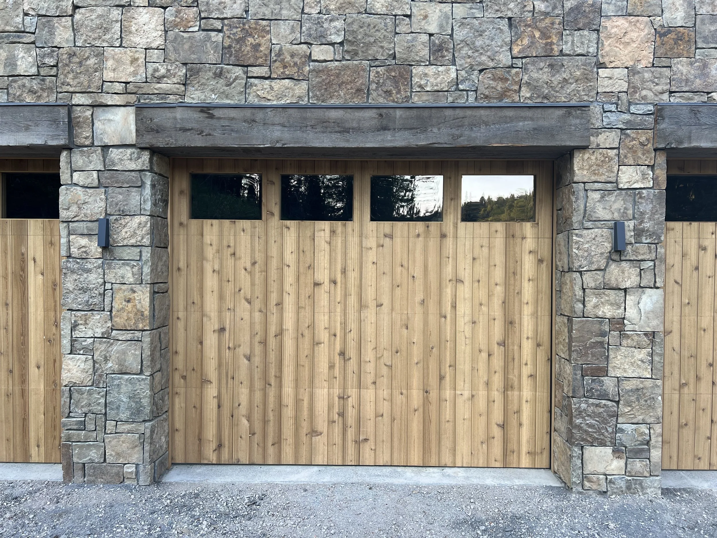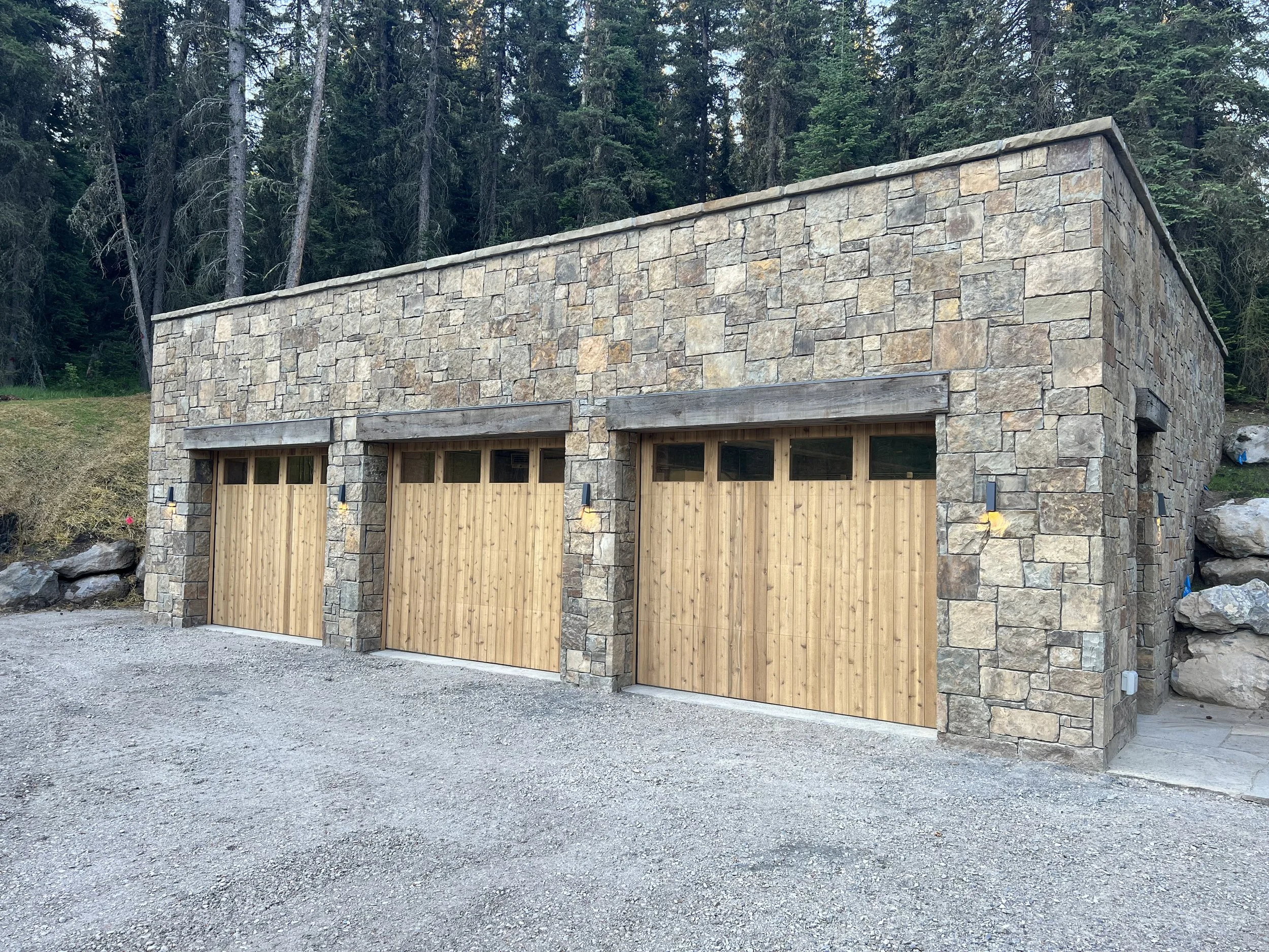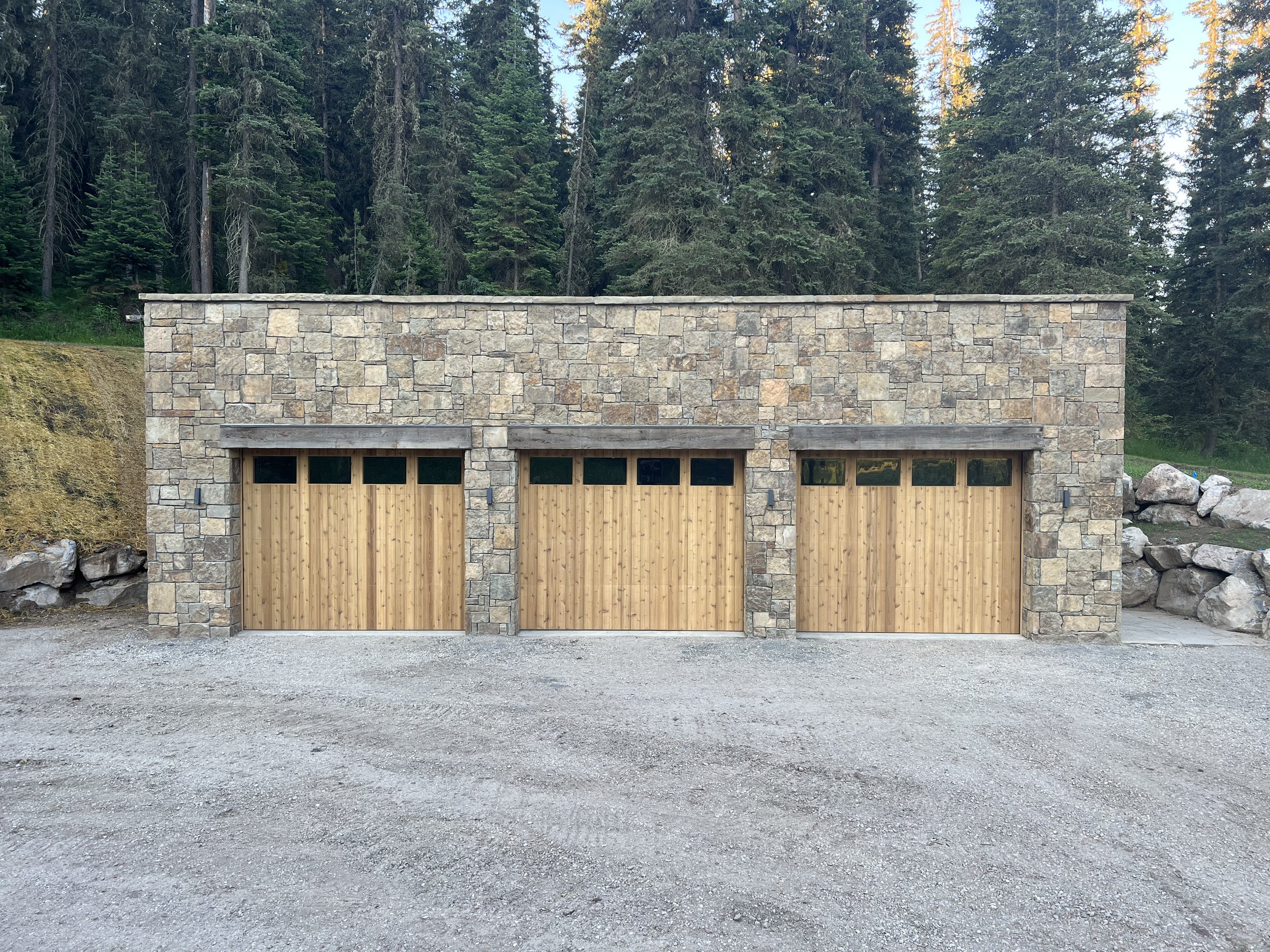 Nestled into the hillside of the Snake River mountain range in Wilson Wyoming, our client requested a detached garage to provide ample vehicle storage and work space while embracing the surrounding landscapes. The farmer’s stone veneer and reclaimed timber headers bring a natural feel to the structure’s façade. An irrigated green roof with native grasses help the building assume it’s position into the hillside.